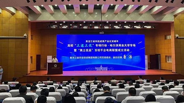 6月13日,省教育厅联合相关单位举办高校“三进三促”专项行动·哈尔滨商业大学专场暨“黑土优品”百校千企电商联盟成立活动。农投集团作为省属大型涉农企业积极响应号召,携旗下优质农产品亮相活动现场,龙江纬度白桦树汁凭借独特的产品魅力,成功走进高校。活动期间,这款沁甜清润的白桦树汁,以寒地黑土孕育的天然禀赋和深加工技术加持的优良品质,吸引了大批高校师生驻足品鉴。大家纷纷上前询问产品特性、饮用价值及产业发展情况,白桦树汁的关注度持续走高。农投集团借此次活动契机,让高校师生近距离认识、了解这一龙江特色农产品,为桦树汁产业拓宽受众市场、深化品牌影响力筑牢了校园基础。