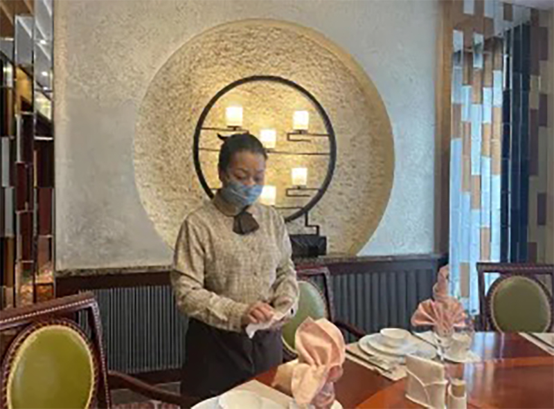 服务人员更是从早餐接待几百人到晚餐结束,假期用餐特点都以家庭聚餐较多用餐时间较长,服务人员在看台期间要比平时多次清理台面卫生、斟倒酒水,在客人离店后要快速清理出包房为下一餐食客准备好用餐包房。和很多服务行业一样,越是假期,越没时间和家人吃顿团圆饭,好在家人们都十分理解,这也让餐饮人更有信心,在这个自已热爱的行业上继续走下去。
