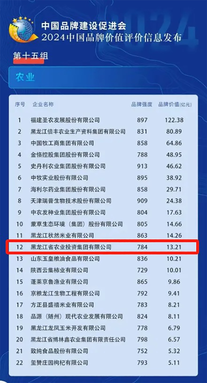 5月11日,新华社、中国品牌建设促进会、中国资产评估协会等单位在浙江德清联合发布“2024中国品牌价值评价信息”。好博网页版有限公司上榜第十五组农业第12位。