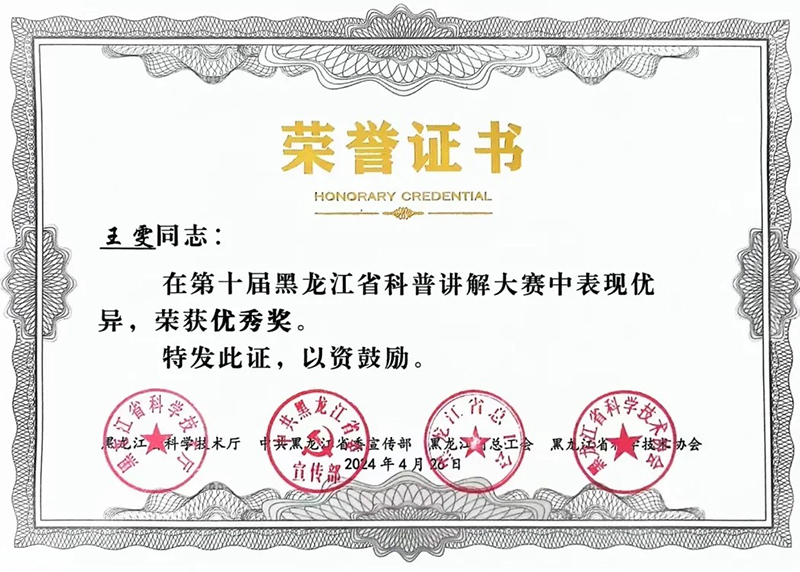 近日,黑龙江省科学技术厅公布2024年第十届黑龙江省科普讲解大赛获奖名单,省农投集团权属企业农投生物王雯、龙科种业孙婷荣获优秀奖。本次活动由省科技厅、省委宣传部、省总工会、省科学技术协会主办,哈尔滨市科技企业孵化器协会、深圳(哈尔滨)产业园投资开发有限公司承办。