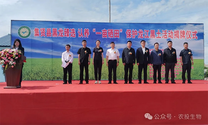 近日,黑龙江省农投生物产业投资有限公司(以下简称农投生物)参加“黑龙臻选”认养一亩硒田、保护龙江黑土公共平台建设揭牌仪式。农投生物党委副书记、副总经理冯喜生,副总经理王璐参加活动。集贤县副县长张春伟及各相关单位、企业负责人出席仪式。