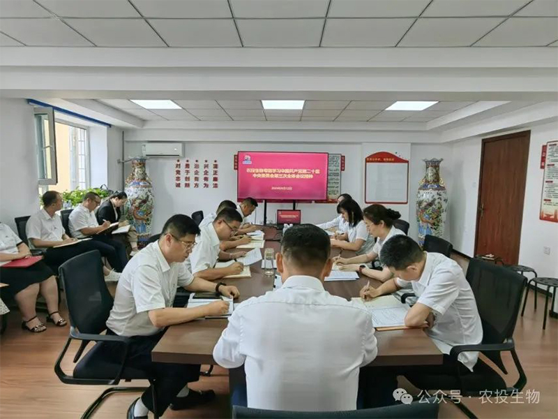 8月12日,农投生物召开专题会议深入学习领会中国共产党第二十届中央委员会第三次全体会议精神,部署贯彻落实举措。会上,传达学习了中国共产党第二十届中央委员会第三次全体会议公报、《中共中央关于进一步全面深化改革、推进中国式现代化的决定》及习近平总书记关于《中共中央关于进一步全面深化改革、推进中国式现代化的决定》的说明。