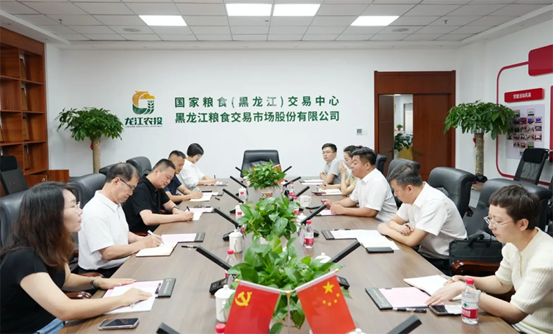 8月29日,河南省储备粮集团管理有限公司总经理助理,河省储备粮轮换管理有限公司党支部书记、董事长韦远一行到好博网页版有限公司(以下简称农投集团)参观调研。黑龙江省粮食和物资储备局调控处科长相野;农投集团总经理助理,交易市场党支部书记、董事长魏志伟参加座谈。