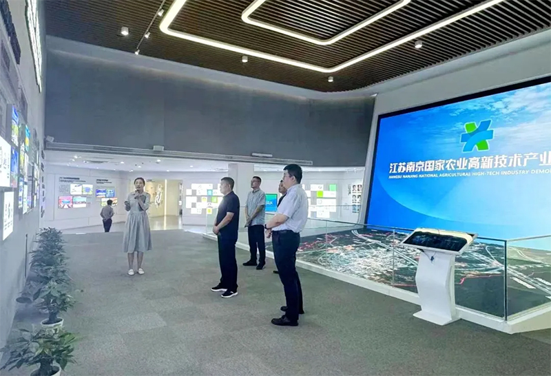 在南京国家农业高新技术产业示范区调研期间,杨光辉一行在南京国家农业高新技术产业示范区白马镇党委书记崔长龙,农高区总经理王鑫海,南京市农业农村局市场与信息化处处长高岭的陪同下详细了解了农业企业的生产流程、研发能力以及市场定位,对示范区内企业的创新能力和市场竞争力给予了高度评价。在交流中,杨光辉向园区内农业企业介绍了农投食品集团在呼兰区的产业园项目,并对园区内农业企业发出入驻邀请,进一步夯实合作根基。
