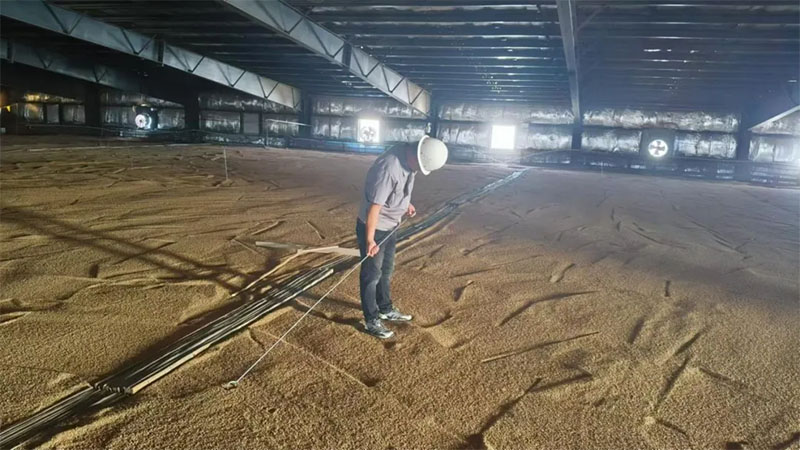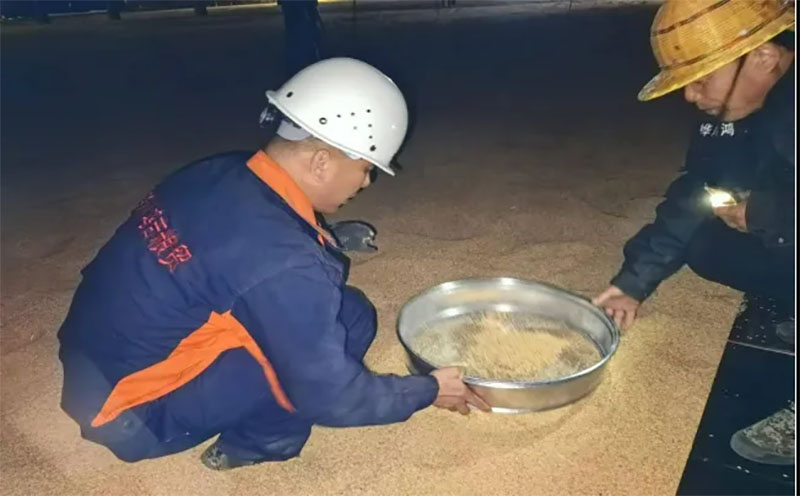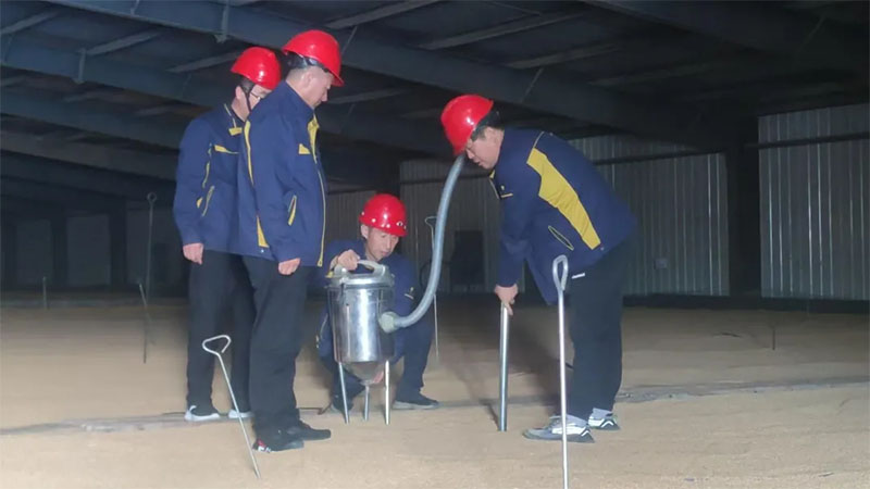 向阳川粮库保管员坚守岗位检查粮温粮情