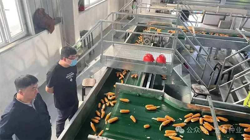 领导班子成员带领生产中心人员在新疆玛纳斯考察制种基地及加工包装情况