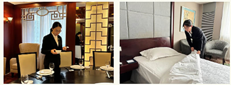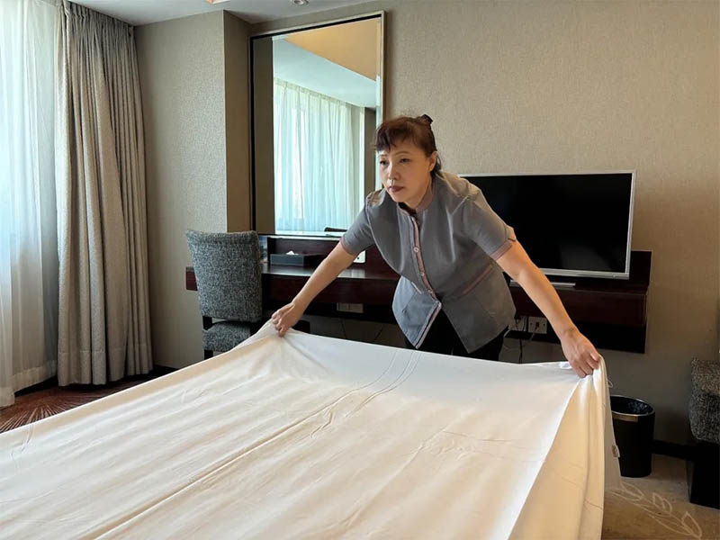 还有这样一群可爱的人,他们是金谷商务清扫员,坚守岗位、默默奉献是他们的座右铭,用他们的“舍”和“离”换来客人出游的便利,工作加班加点,不辞辛劳地打扫房间、更换床单被罩、补充日用品,为客人提供整洁舒适的住宿环境。