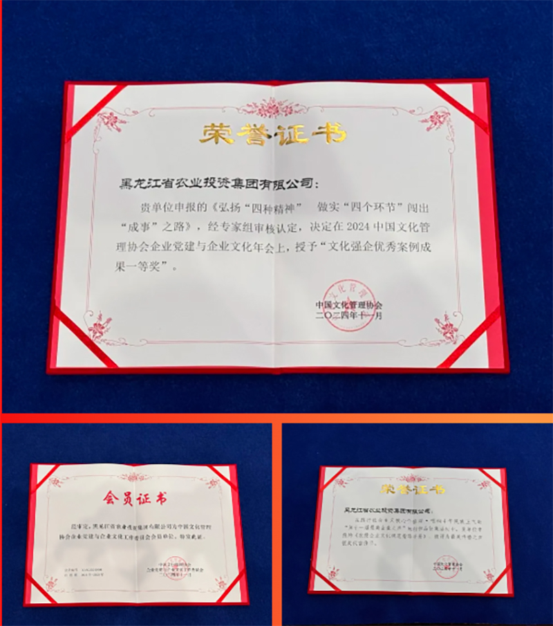农投集团自组建以来,就高度重视企业文化建设工作,不断从思想、思路层面破题,优化顶层设计,以企业文化创新助推企业高质量发展。在省委省政府和省国资委的坚强领导下,积极探索和践行“成事”文化,并取得了一定成效。2023年被中企联评为我省首个“全国优秀企业文化成果特等奖”,同年获得黑龙江省2023年度思想政治工作研究成果优秀奖。2024年参与《黑龙江省企业文化建设规范》团体标准的起草工作。农投集团将以此次活动为契机,深入贯彻落实习近平文化思想,大力弘扬“四种精神”,全力践行“成事”文化,助推我省企业文化建设健康发展,提升企业文化赋能企业高质量发展的能力。