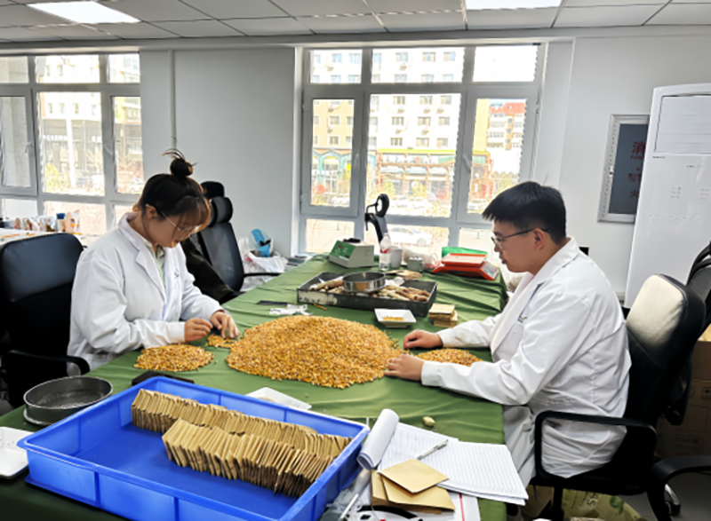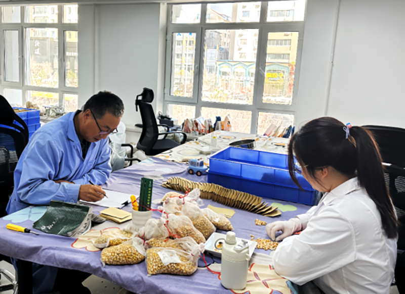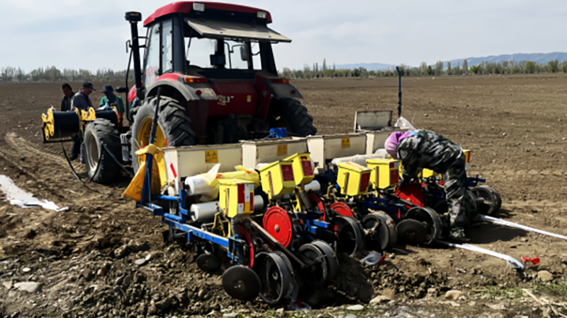 △生产中心人员播种前检查播种机种子及化肥情况,确保播种顺利开展。