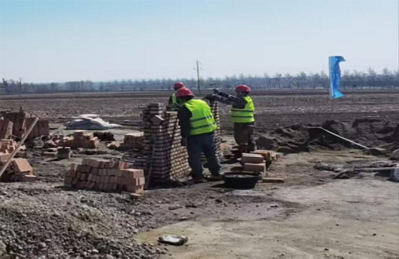 △黑龙江省农业开发建设集团第四建筑有限公司鸡东县玉米单产提升建设项目正在砌筑。