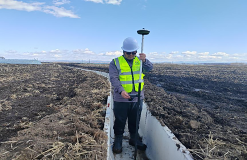 △黑龙江省农业开发建设集团第六建筑有限公司通河分公司高标准农田施工项目“复测沟渠高程”。