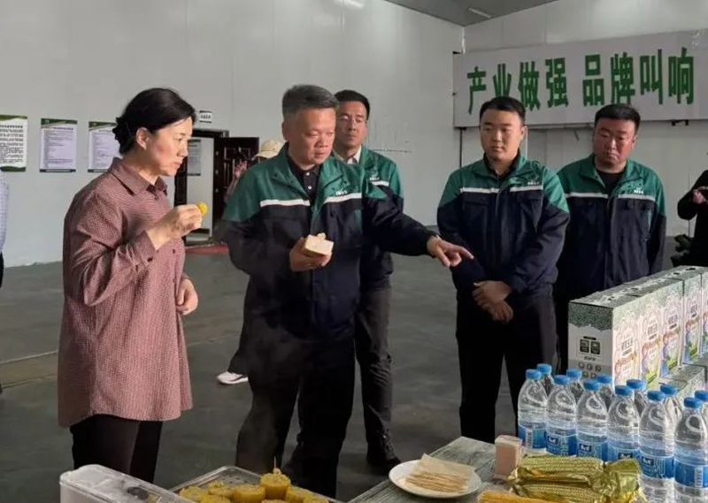 闫卫华一行走进生产加工车间,详细了解了农投集团产业援疆项目的发展历程、生产经营成果、企业文化建设成效以及当前面临的问题和困难,并品鉴了鲜食玉米。