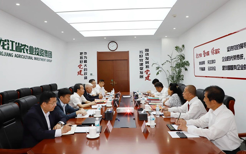 6月17日,农投集团副总经理李国强在集团总部会见山东金满田生物科技集团有限公司董事长赵秀萍一行。哈尔滨市平房区政协社会和法制委员会主任刘宏伟、北大荒集团农业发展部主管夏艳涛等参加会见。