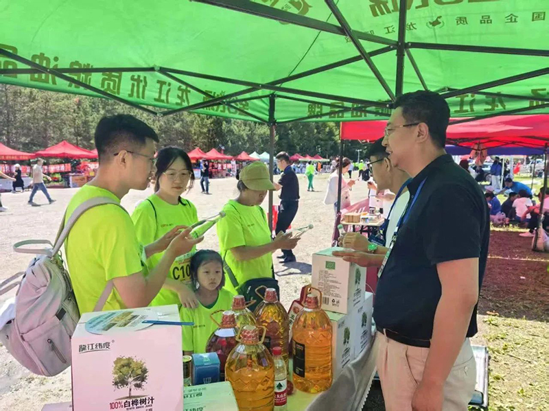 活动现场,农投食品集团以“龙江好物”平台推广为核心,创新构建“线上+线下”融合展销模式。一方面通过现场品鉴区展示五常大米、鲜食玉米、白桦树汁等地标产品,以实物体验传递黑土物产的天然品质;另一方面依托平台数字化渠道,同步开启“龙江好物”线上平台推广,进一步链接全国消费市场。通过场景化体验与网络化传播双轮驱动,深度激活龙江生态资源价值,让“龙江好物”的优质口碑从活动现场延伸至更广阔的消费场景。
